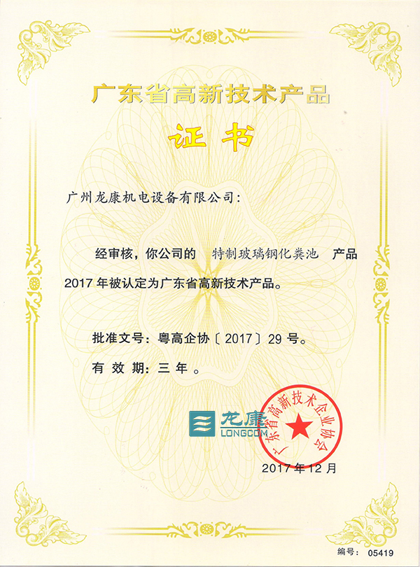 龙康公司研发的高强度玻璃钢化粪池是广东省高新技术产品,广泛应于大型工业与民用建筑和商业项目。