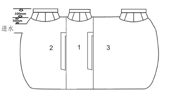 取3套样品,组装完毕后,在(23±5)℃环境下,向一池注水至溢出口(或内挡板上的过粪管接口下边缘),放置24h后观察一池的水是否渗漏至二池(通过过粪管流入的不计)。 将一池的水排空,向二池注水至溢出口(或内挡板上的过粪管接口下边缘),放置24h后观察二池的水是否渗漏至一池和三池(通过过粪管流入的不计)。 将二池的水排空,向三池注水至溢出口(或内挡板上的过粪管接口下边缘),放置24h后观察三池的水是否渗漏至二池(通过过粪管流入的不计)。 |